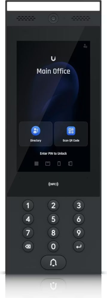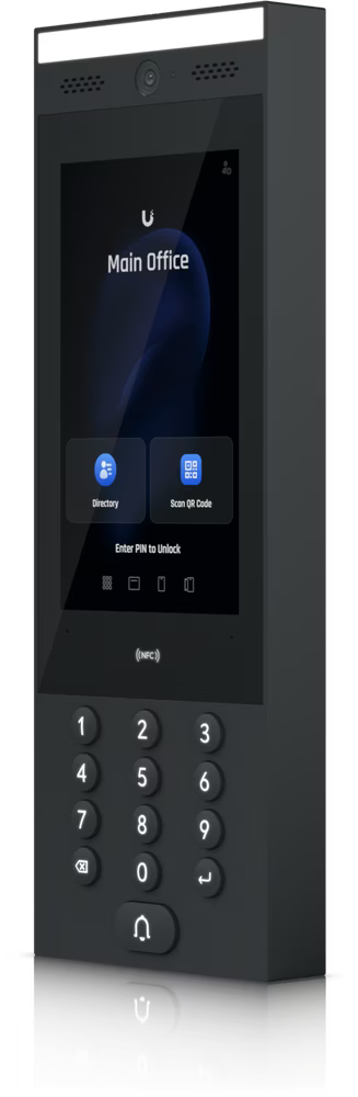 Entsperren mit einer NFC-Karte, der UniFi Identity Mobile App, einem PIN-Code oder einem QR-Code. Adressbuch und Türklingel zur Anforderung des Zutritts. Kopplung mit mehreren UniFi Intercom Viewern zur Fernsteuerung des Zugangs. Verbindet sich mit der UniFi Access Hub Serie über PoE. Wetterfest (im Aussenbereich -30 bis 60 °C). Innen-/Aussensprechstelle für die Verwaltung von Zugangsanfragen zu Wohn- und Geschäftsgebäuden.